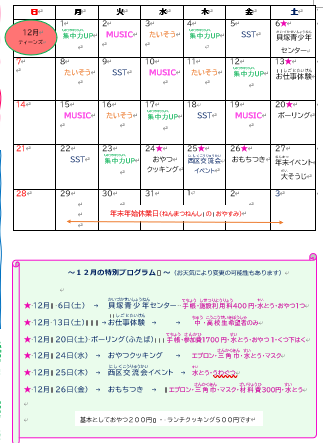 ハピスポ浜寺12月の予定